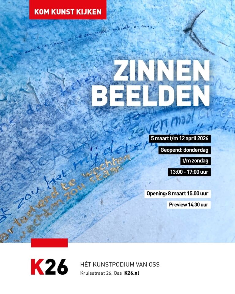 5 Maart t/m 12 April 2026 Tijdens ZINNEN BEELDEN gaan poëzie en beeldende kunst hand in hand. Poëzie is verwant aan beeldende kunst: beide zijn autonome vormen van verbeelding. Vanuit gedichten zijn kunstwerken ontstaan in uiteenlopende disciplines, waarin woord en…